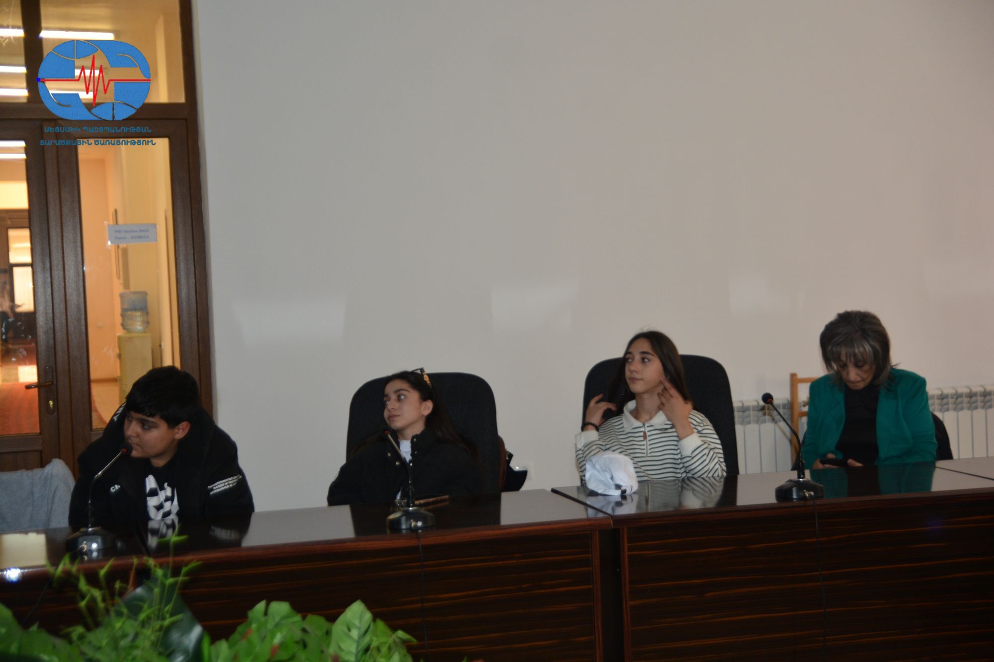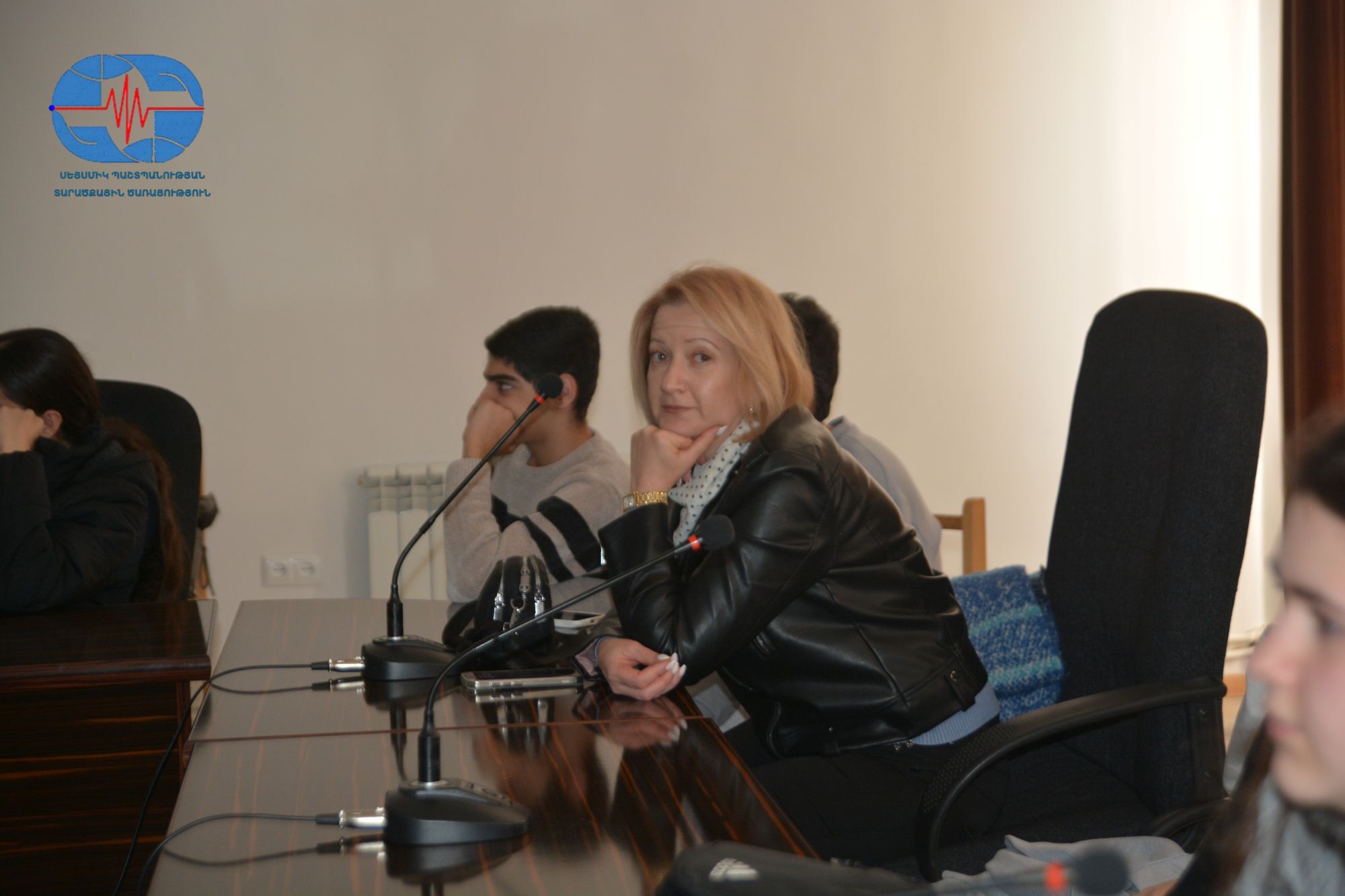 Տվյալների հավաքագրման և օպերատիվ մշակման բաժնի պետ Նորայր Գրիգորյանը և Սեյսմոլոգիայի բաժնի գլխավոր մասնագետ Էդմոնդ Գևորգյանը խոսեցին Հայաստանում գրանցված պատմական երկրաշարժերի, ուժեղ երկրաշարժերի կրկնելիության, երկրաշարժին հաջորդող ուժեղ ցնցումների հավանականության, երկրաշարժի վերաբերյալ պաշտոնական լրատվության տարածման ընթացակարգի և այլ հարցերի շուրջ։