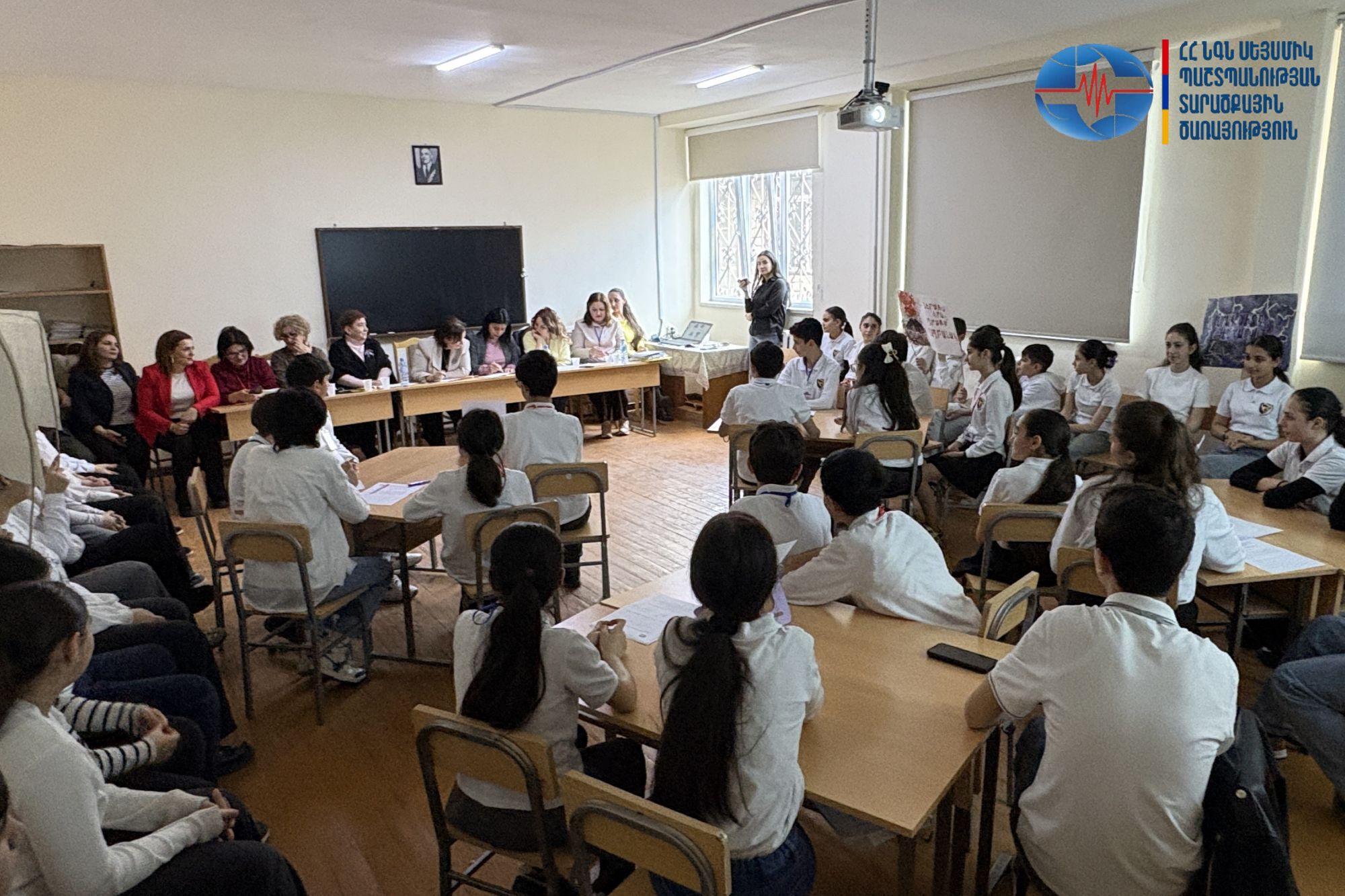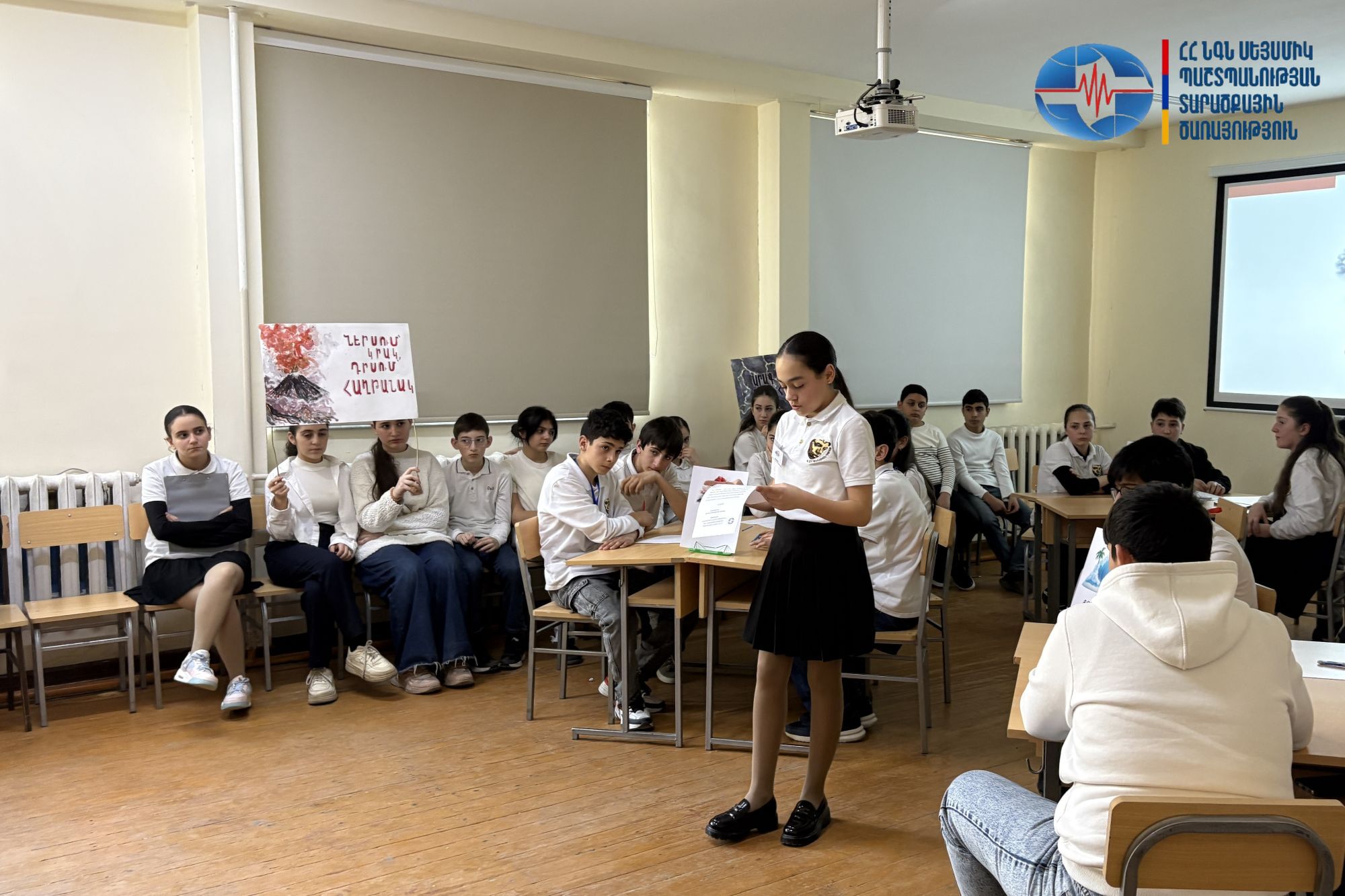ՀՀ ներքին գործերի նախարարության սեյսմիկ պաշտպանության տարածքային ծառայության նախաձեռնությամբ՝ Երևանի Պարույր Սևակի անվան N 123 հիմնական դպրոցում անցկացվեց «Պատրաստ եղիր դիմակայելու աղետին» խորագրով խաղ-վիկտորինա։