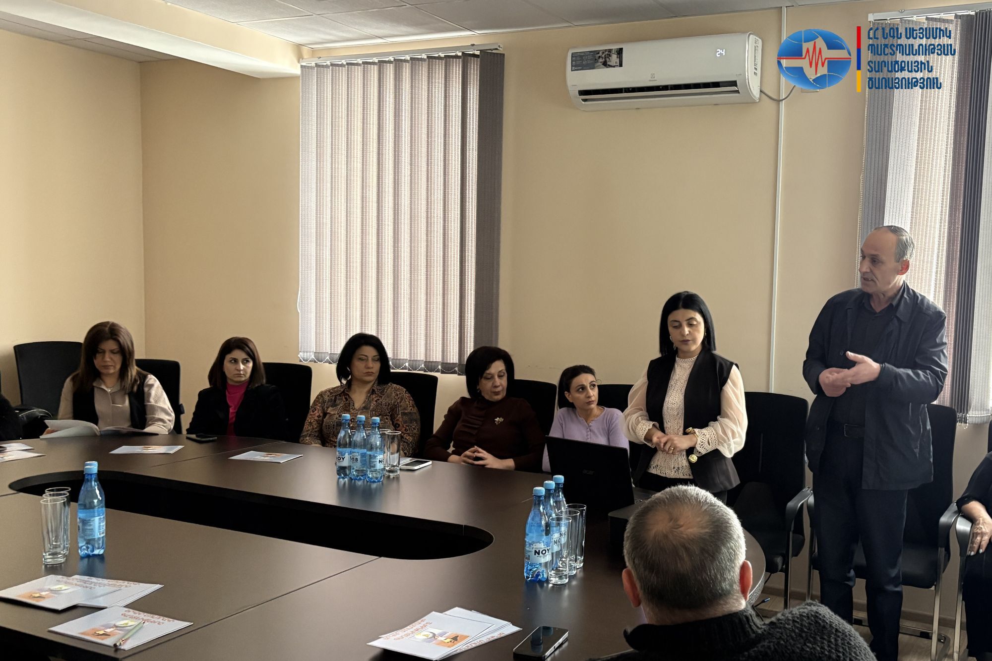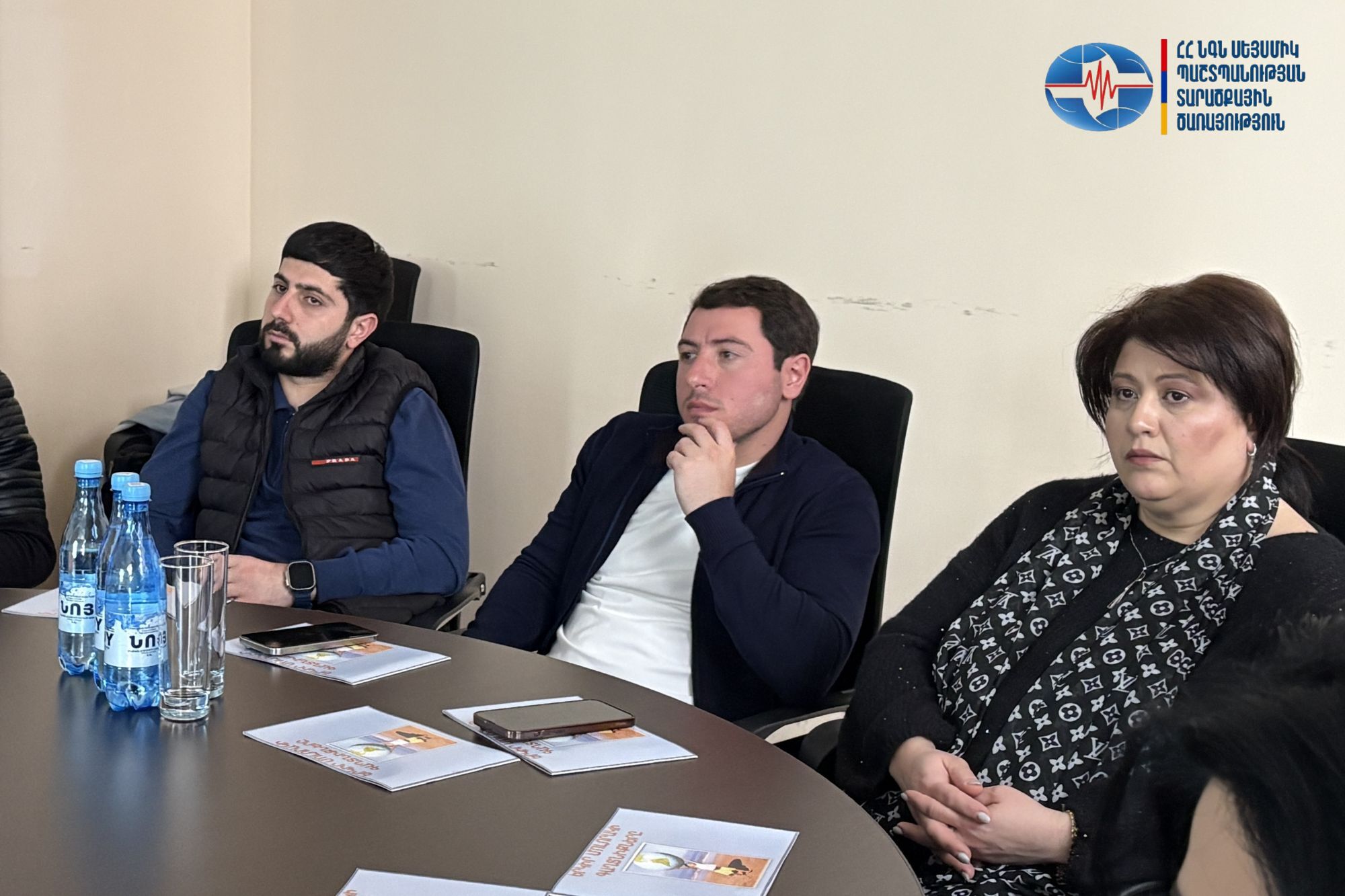 ՀՀ ներքին գործերի նախարարության Սեյսմիկ պաշտպանության տարածքային ծառայության բնակչության հետ տարվող աշխատանքների վարչության մասնագետներ Աիդա Ավետիսյանը, Սերոբ Դարբինյանը և Գոհար Արամյանը ներկայացրել են Հայաստանի սեյսմիկ վտանգի քարտեզները, վտանգի գնահատմանն ու սեյսմիկ ռիսկի նվազեցմանն ուղղված քայլերը, Հայաստանի տարածքում գրանցված պատմական երկրաշարժերը, ինչպես նաև Կովկասի տարածաշրջանում սալերի տեկտոնիկան ու դրա հնարավոր հետևանքները։ Ակտիվ քննարկում է ծավալվել սեյսմակայուն շինարարության և շենքերի սեյսմիկ զինվածության բարձրացման վերաբերյալ։